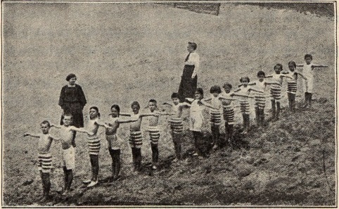 Wszyscy uczniowie wszystkich klas muszą co dzień przebywać 3 godziny na wolnym powietrzu (wycieczki, gry i zabawy ruchowe) we wszystkie dni pogodne (także w zimie). W gorące dni wiosenne i letnie chodzą boso, pobierają kąpiele słoneczne i rzeczne, używają najlżejszej odzieży płóciennej, chodzą stale cały rok bez okrycia głowy, z wyjątkiem dni upalnych. Do kąpieli w zimie służą baseny w suterenach gmachu.”