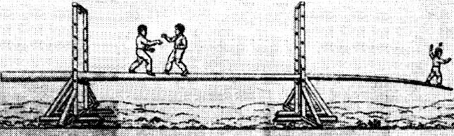 Fot.1. Gimnastyka Jahna na „pływającym drzewie”, rok 1814.