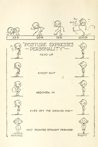 Fotografia 3. pochodzi z książki „Kalistenika: nowoczesne metody swobodnego nauczania ćwiczeń” i przedstawia porównanie złej i prawidłowej postawy człowieka w formie ilustracji.